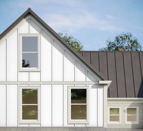 Give your home exterior a fresh look with vertical panel siding available in a range of styles and textures. When combined with Hardie® Trim Batten boards, you'll achieve the rustic board-and-batten look that defines the modern farmhouse.