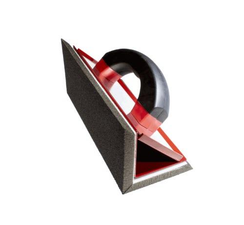 The U-90 is the only 3 in 1, 90° Corner Hand Sander / Pole Sander / Flat Sander in the world with quick change hook & loop sanding sponges. These sanding sponges are washable, tear resistant, and long lasting. They provide a built in bumper with the overlap at both ends of the tool to eliminate wall and ceiling damage, resulting in a professional finish every time. Sponges are available in 80 or 120 grit. This tool is made in the U.S.A. from high quality, powder coated aluminum. Included are two, medium 80 grit sanding sponges.